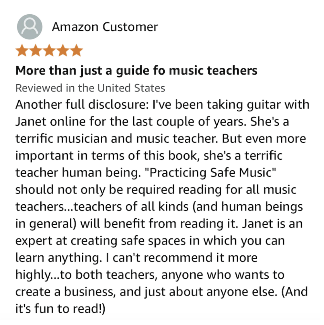 In her new book, Janet Feld gives you the chance to steal her methods, developed from decades of experience teaching music to people of all ages. Plus, a section on the proper care and feeding of a music teacher.